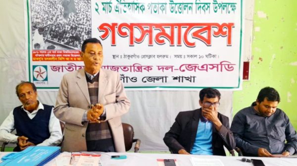 ২ মার্চ রোববার ঠাকুরগাঁও প্রেসক্লাব মিলনায়তনে গণসমাবেশ উপলক্ষে এক আলোচনা সভা অনুষ্ঠিত হয়। জাতীয় সমাজতান্ত্রিক দল-জেএসডি’র ঠাকুরগাঁও জেলা শাখার আয়োজনে আলোচনা সভায় ঠাকুরগাঁও জেলা