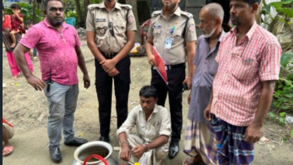 ময়মনসিংহের ত্রিশাল উপজেলায় অবৈধ চোলাই মদ উৎপাদনের একটি গোপন আস্তানা ফাঁস করেছে মাদকদ্রব্য নিয়ন্ত্রণ অধিদপ্তর। গোপন সংবাদের ভিত্তিতে শুক্রবার (২৭ জুন ২০২৫) দুপুরে পরিচালিত এক সফল অভিযানে ৫ লিটার চোলাই মদ জব্দ করা হয়।