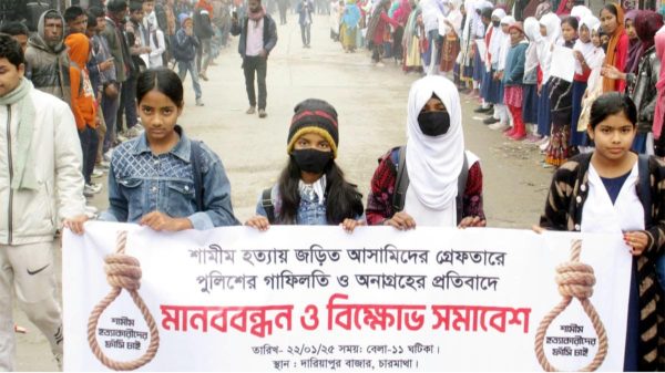 এর প্রতিবাদে এবং আসামিদের গ্রেফতারের দাবিতে বুধবার দুপুরে মানববন্ধন করে বিক্ষুব্ধ শিক্ষার্থীসহ এলাকাবাসী। গাইবান্ধা-সুন্দরগঞ্জ সড়কের দারিয়াপুর বাজার এলাকায় প্রায় দুঘন্টাব্যাপী সড়ক অবরোধ করা হয়।