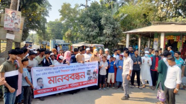 মানববন্ধনে বক্তারা বলেন,মাদ্রাসার এক শিক্ষার্থীর ছুরিকাঘাতে ছয়জন গুরুতর আহত হলেও মাদ্রাসা কর্তৃপক্ষ কোনো আইনগত ব্যবস্থা নেয়নি। অভিযুক্ত সিয়ামকে দ্রুত গ্রেপ্তার,দৃষ্টান্তমূলক শাস্তি এবং মাদ্রাসা থেকে বহিষ্কার করার দাবি জানান তারা।