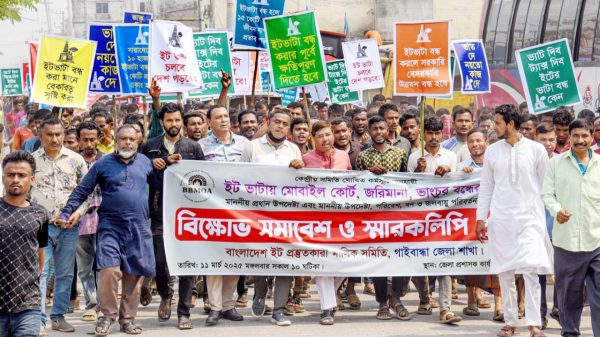 গাইবান্ধা প্রতিনিধি::ইটভাটায় মোবাইল কোর্ট, জরিমানা ও ভাংচুরের বিরুদ্ধে গাইবান্ধার ভাটা মালিক ও শ্রমিকরা বিক্ষোভ মিছিল ও জেলা প্রশাসকের কাছে স্মারকলিপি দিয়েছে। মঙ্গলবার জেলার সব ইট ভাটার হাজার হাজার শ্রমিক ও মালিকরা জেলা শহরে বিক্ষোভ মিছিল করেন।